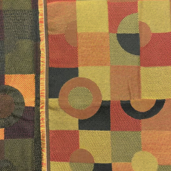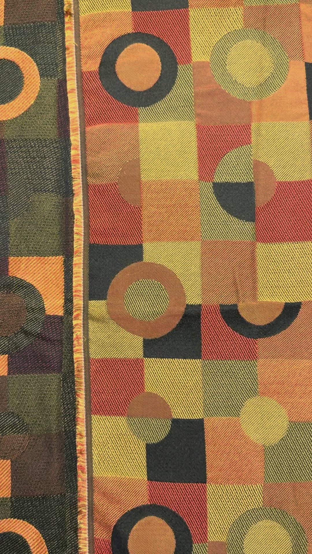 1 Yd x 60" Circle Square Upholstery Weight Cotton (Blend?) Fabric. Secondhand and ideal for apparel, upholstery, and crafting.