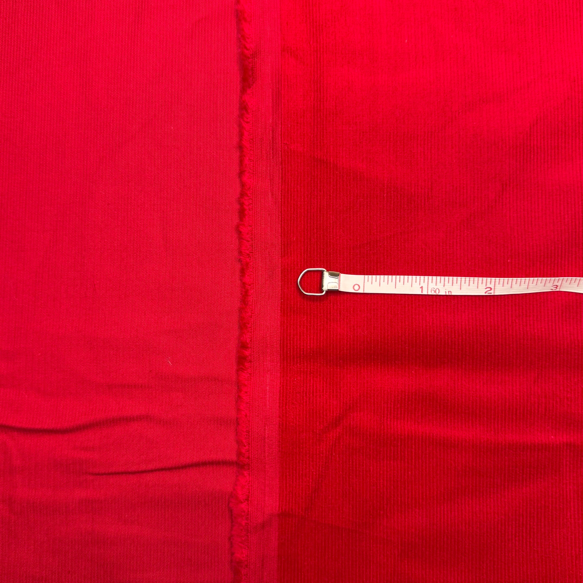 2 Yds x 64" Red Micro Corduroy Cotton Fabric. Secondhand and ideal for apparel and crafting.