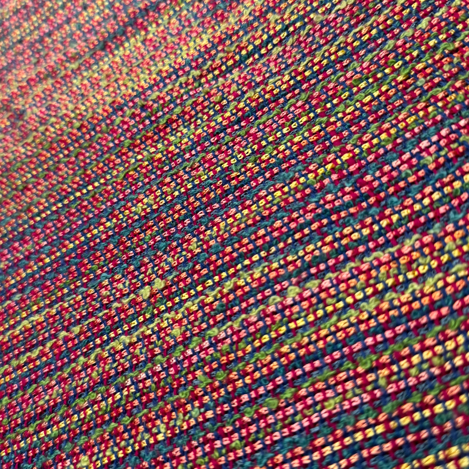 3 1/2 Yds x 60" Rainbow Weave Polyester Fabric. Secondhand and ideal for apparel, upholstery, and crafting.