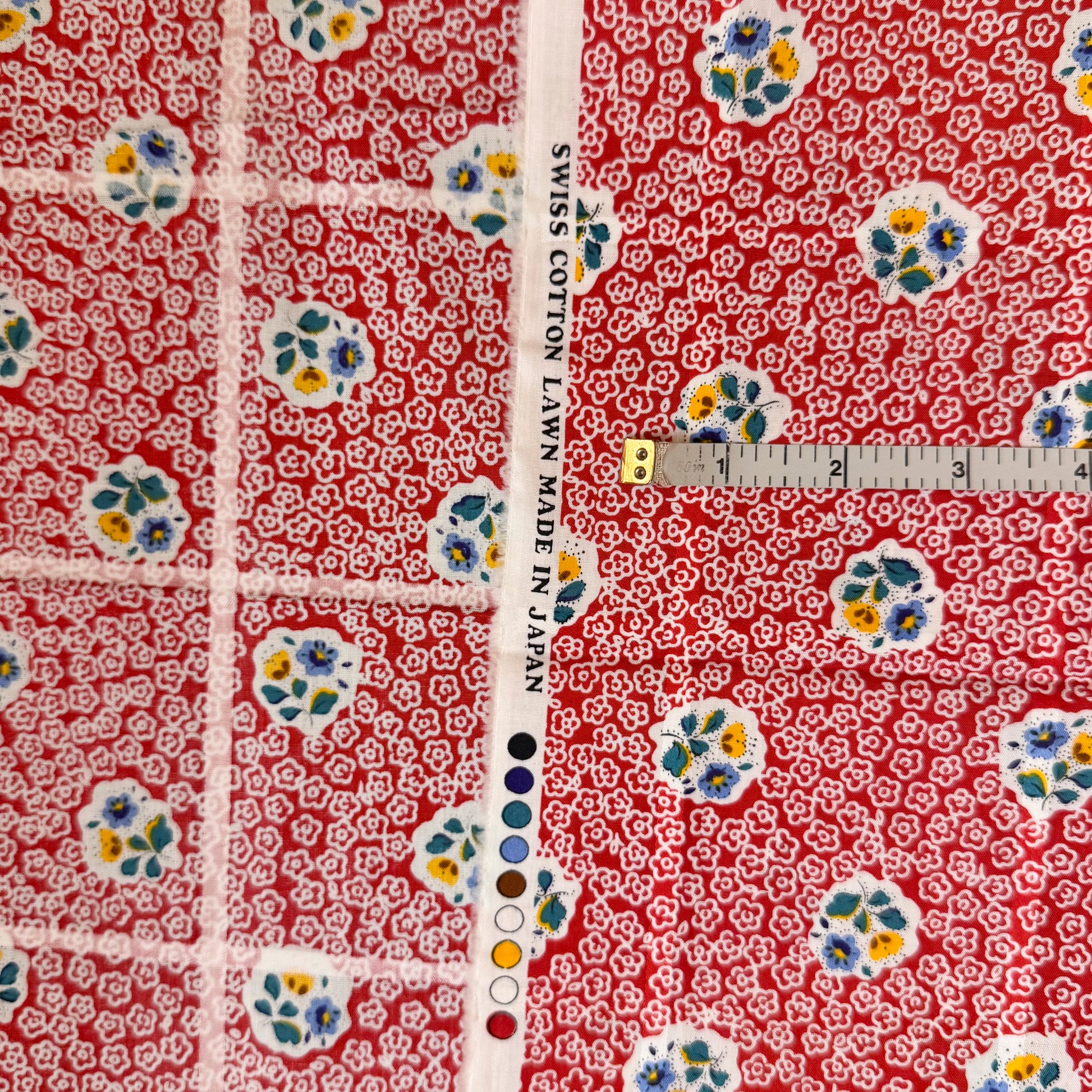 4 Yds x 44" Red and White Floral Swiss Cotton Lawn Fabric